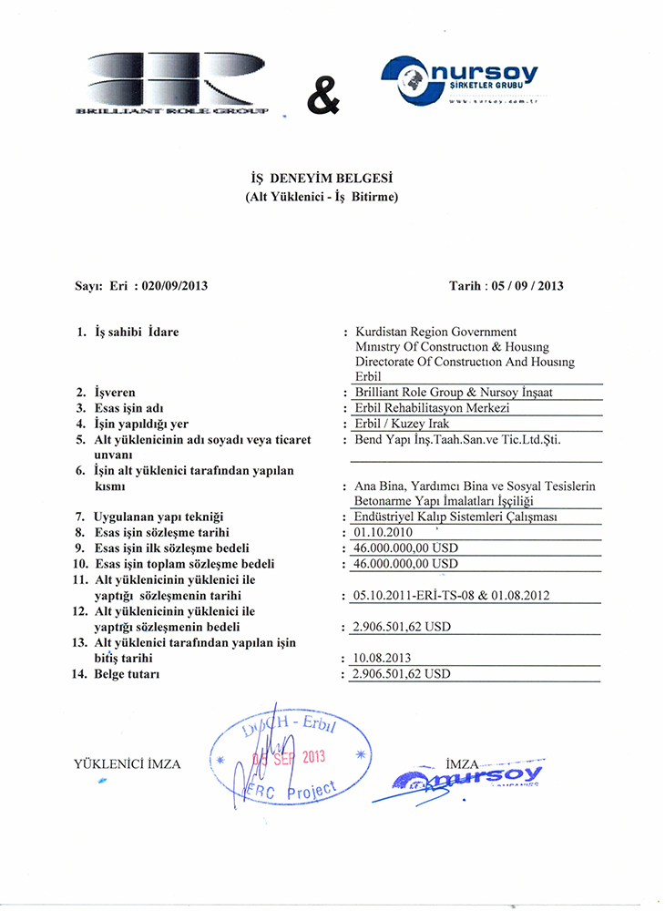 Erbil Rehabilitasyon Merkezi İş Bitirme